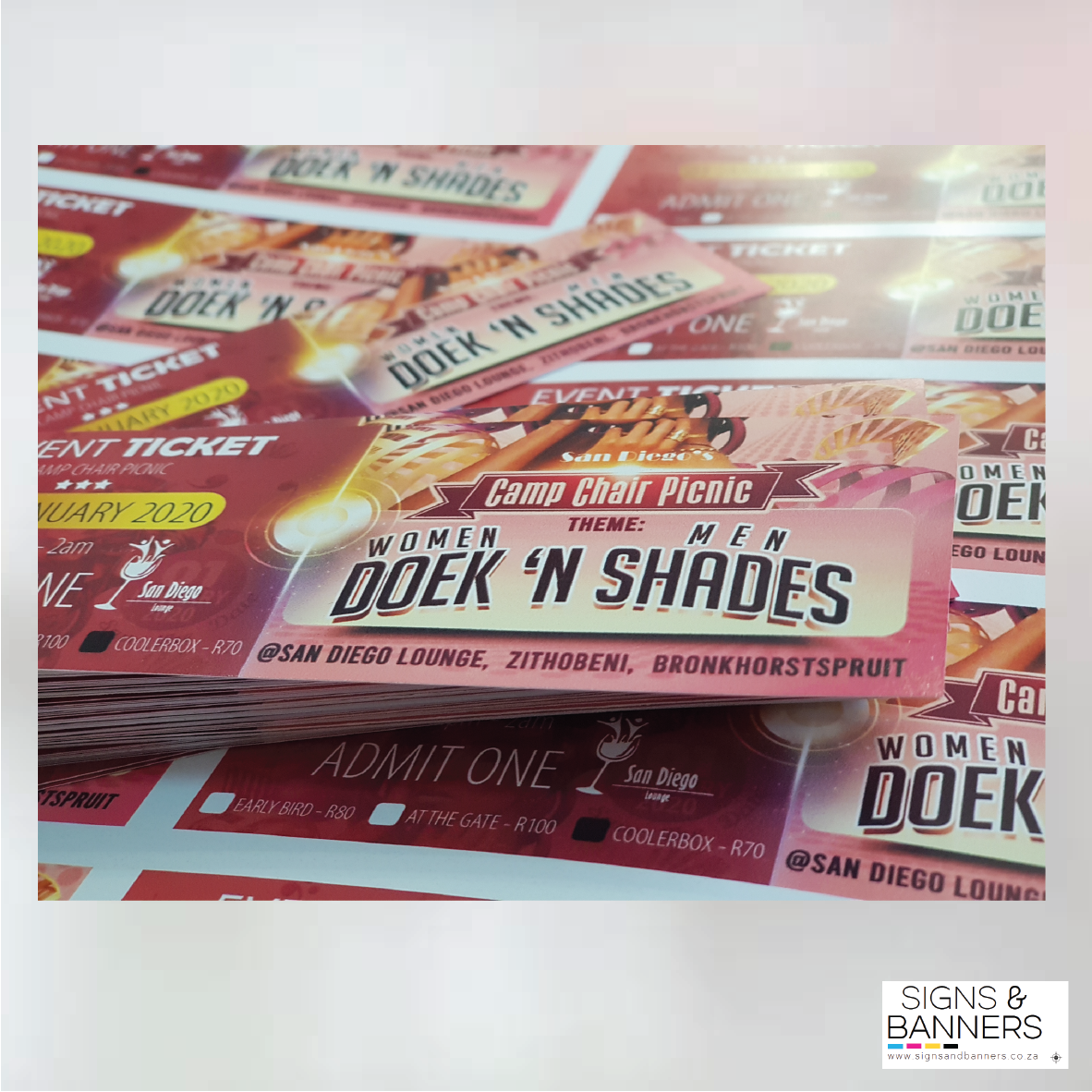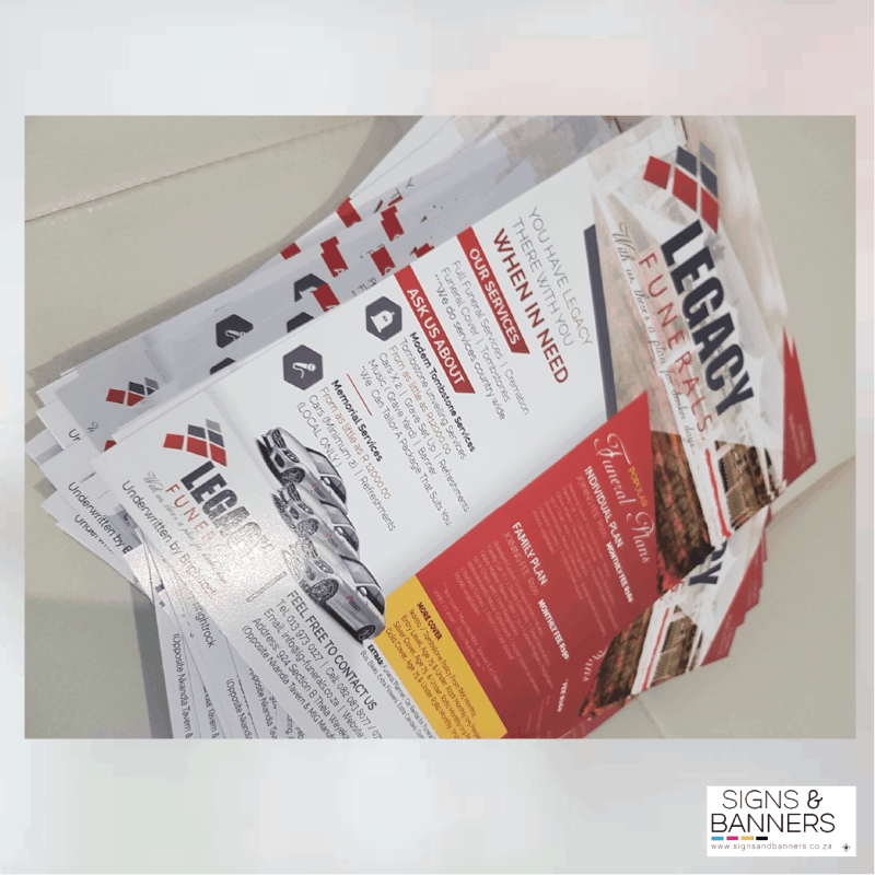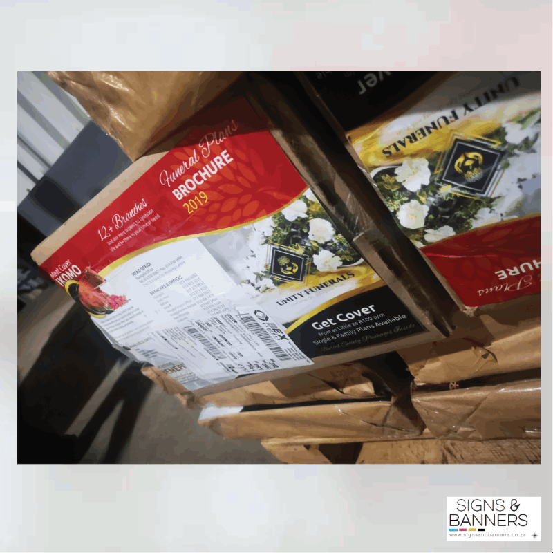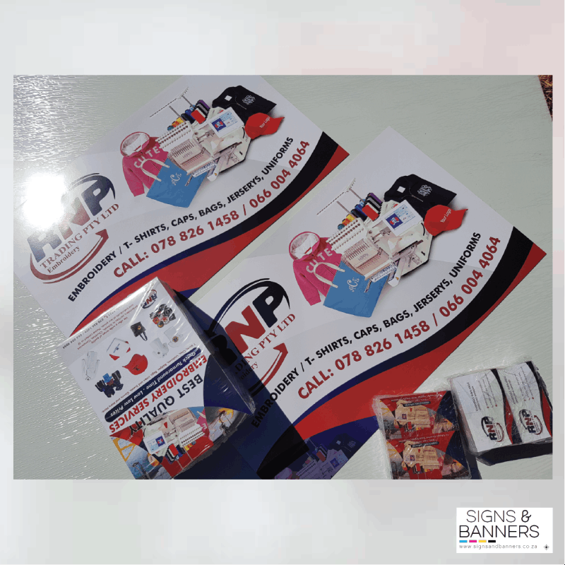 ARTWORK & SET UP FEESR240 design fee charged when client does not have artwork. No setup fees.PRODUCTION TIMES1 to 7 working days production times apply from receipt of full payment and approval artwork. PAYMENTFull Payment required for all orders below R10 000 and 70% Deposit for orders above. DELIVERYR100 delivery fee applicable within 100km from Centurion. Courier available for deliveries nationwide.